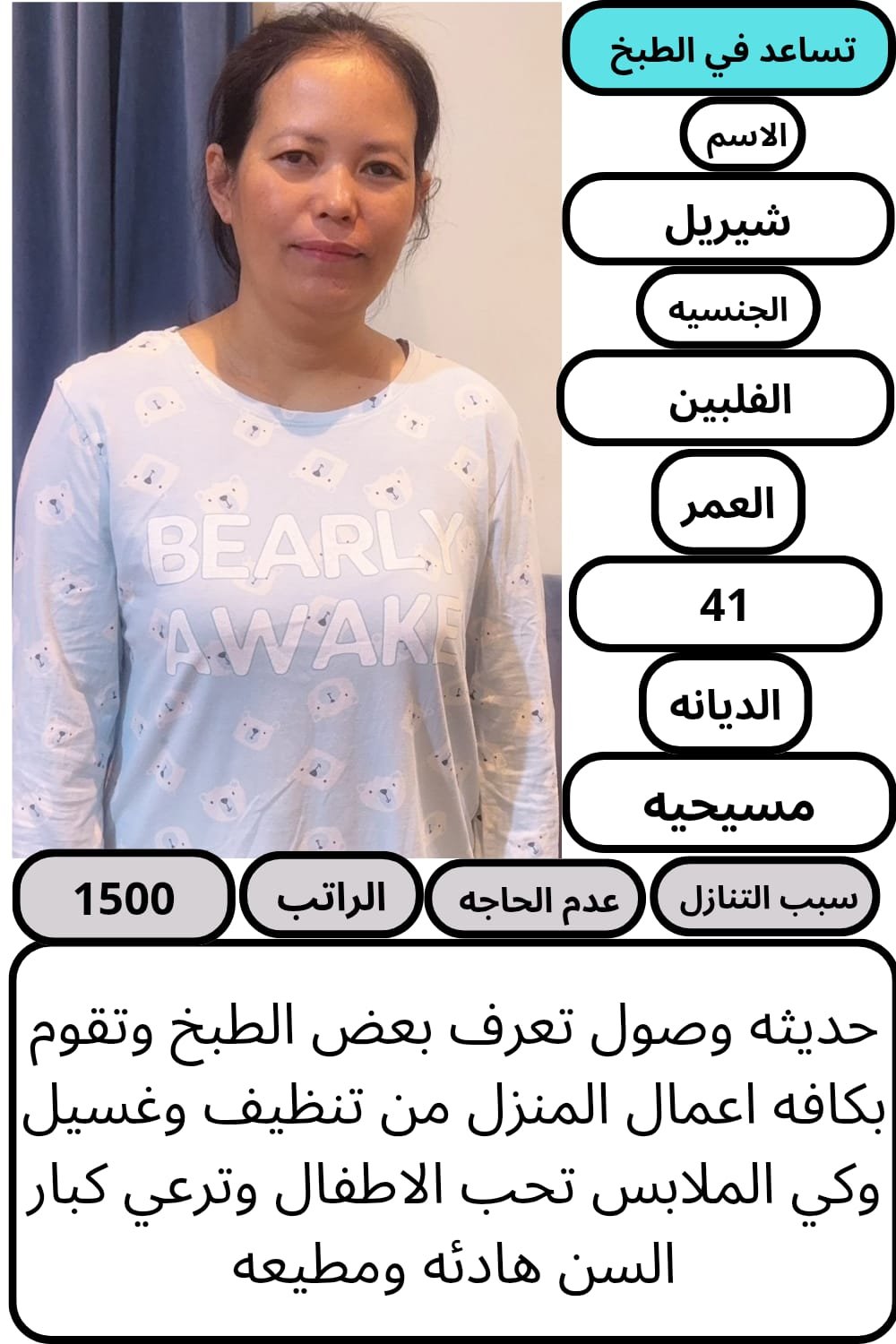متوفر عماله منزليه وطباخات ومرافقين لكبار السن وعاملات نظافه ومربيات اطفال وكوافيرات وسائقين ومتاح التجربه لكل أنحاء المملكه والتجربة خير برهان 🇸🇦🇸🇦