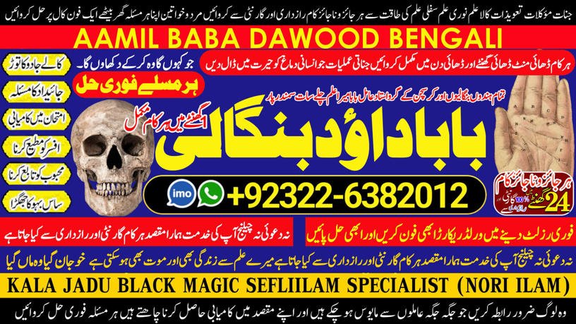 Amil Baba Dawood Bangali { PAK: 0322-6382012  —- UAN: 0092-322-6382012}  is a renowned spiritual healer and master of ancient occult sciences, specializing in Black Magic, Sephi Ilam, Nori Ilam, and Voodoo Spells. With decades of experience in the mystical arts, he has gained a reputation as a powerful and trusted guide for those seeking solutions to life’s most challenging problems.