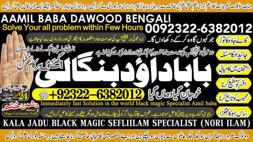 Amil Baba Dawood Bangali { PAK: 0322-6382012  —- UAN: 0092-322-6382012}  is a renowned spiritual healer and master of ancient occult sciences, specializing in Black Magic, Sephi Ilam, Nori Ilam, and Voodoo Spells. With decades of experience in the mystical arts, he has gained a reputation as a powerful and trusted guide for those seeking solutions to life’s most challenging problems.