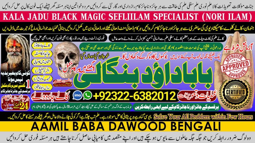Amil Baba Dawood Bangali { PAK: 0322-6382012  —- UAN: 0092-322-6382012}  is a renowned spiritual healer and master of ancient occult sciences, specializing in Black Magic, Sephi Ilam, Nori Ilam, and Voodoo Spells. With decades of experience in the mystical arts, he has gained a reputation as a powerful and trusted guide for those seeking solutions to life’s most challenging problems.