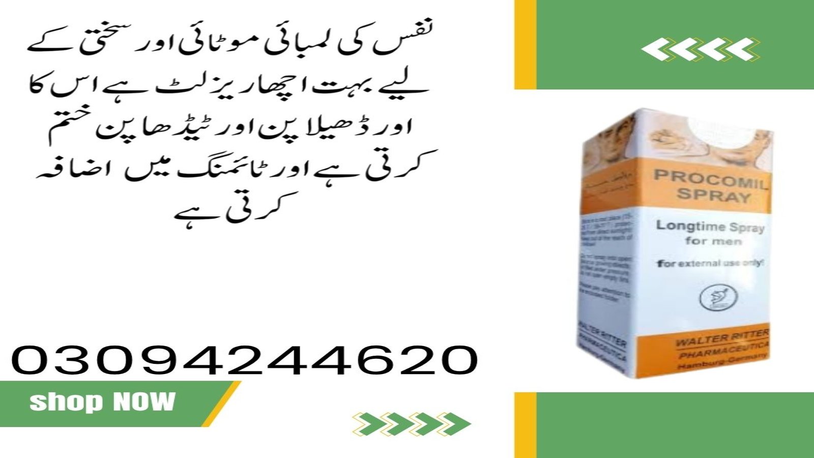 Procomil Spray in Pakistan is a well-balanced option for men looking to gently improve their endurance in intimate moments. With its German-made formula, easy application, and subtle effect, it offers a smart solution for those struggling with early ejaculation — especially beginners or those who’ve had issues with stronger sprays.